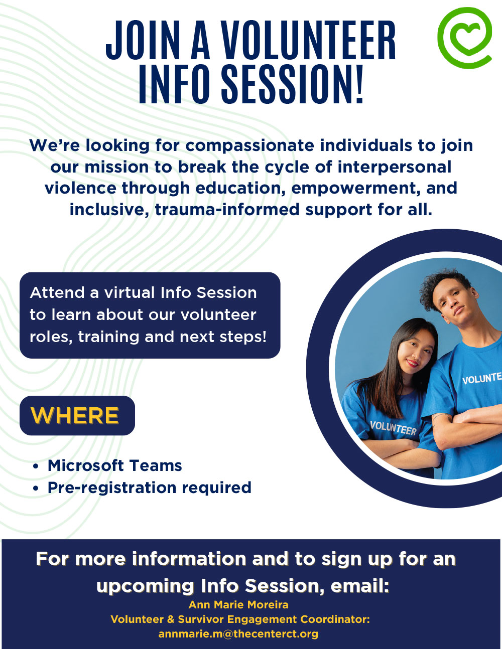 To be a direct service volunteer, you must complete the 40-hour state-certification training provided in-house per CGS 52-146k.